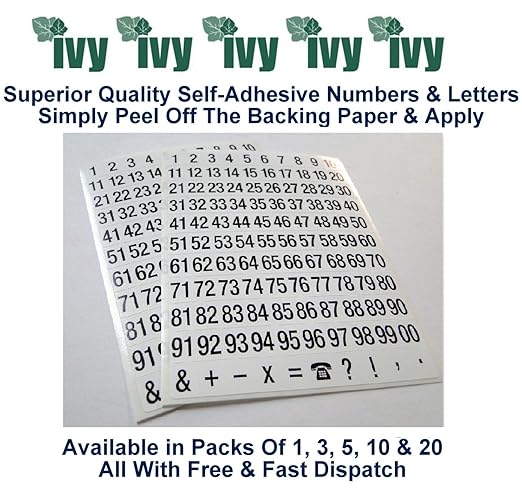 IVY SELF Adhesive LABEL'S 1-500 [6 of Each Number = 3000 Labels] Ivy Branded Self Adhesive labels 1 - 500 numbers 6 Packs of 1-500 Labels - 6 of each number = 3000 Labels in total Black background with White numbers Great Value for money & MADE IN THE UK 13mm wide x 8mm Length New (4) from $13.64 FREE Shipping on orders over $25.00 shipped by Amazon. Similar item to consider